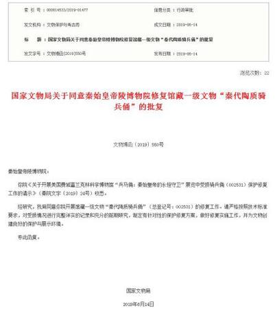 中新网客户端7月4日电(记者 宋宇晟)还记得两年前在海外展出时,被美国男子掰断手指的兵马俑吗?它将要被修复了。国家文物局日前发文,同意秦始皇帝陵博物院开展馆藏一级文物“秦代陶质骑兵俑”的修复工作。批复要求对受损情况进行完整详实的记录和充分的前期研究,制定有针对性的?;ば薷捶桨?,做好修复实施工作。