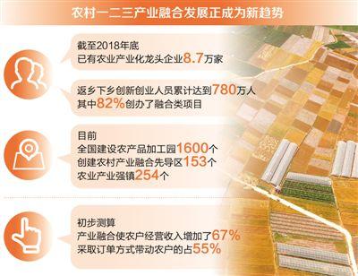 推进创新创业。做亮融合品牌闪光点,创响一批质量过硬、信誉可靠的融合品牌;发展绿色循环农业,促进粮经饲、农牧渔、产加销、农文旅、一二三产业在更大范围的循环融合。截至2018年底,“田秀才”“土专家”“乡创客”等本乡创新创业人员达3100多万。
