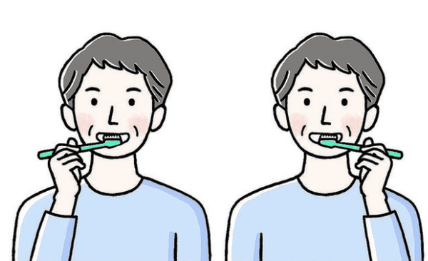 先用一只手拿牙刷,将所有的牙齿刷一遍。然后换另一只手把所有的牙齿再刷一遍。