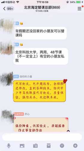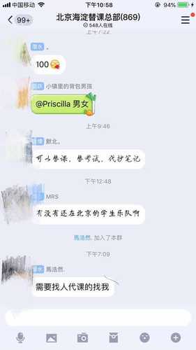 7月8日早上8点,多个替课群里开始出现替课的供求信息?!白ㄒ堤婵?,价格好说。长期的有优惠?!?0岁的陈鑫(化名)在北京大学生替课总部和北京海淀替课总部的QQ群内几乎同时发出消息。为了争取更多代课机会,陈鑫加入十几个替课群。