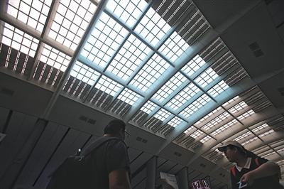 7月9日,北京南站,候车大厅玻璃使用了纳米材料涂层,给室内降温。 本版摄影 新京报记者 王贵彬