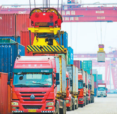 山东青岛港,外贸集装箱堆场。 俞方平摄(影像中国) |