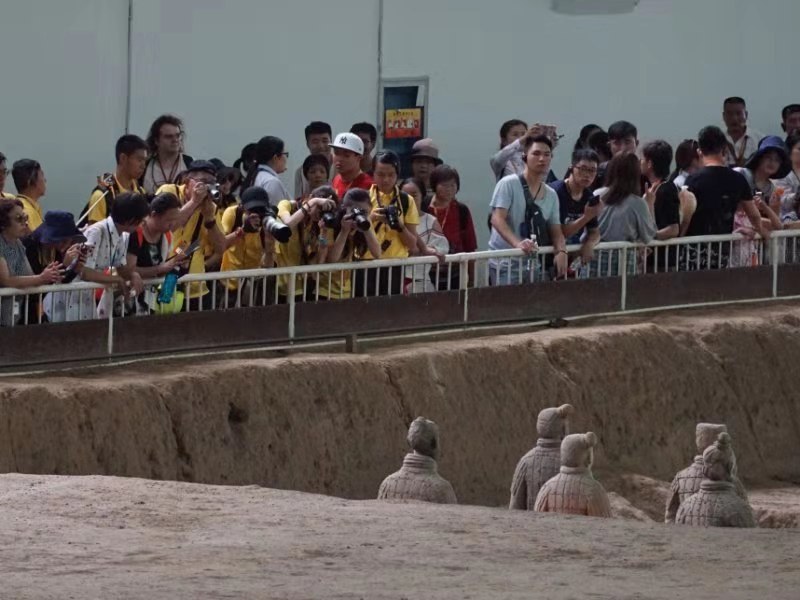 讲解老师的讲解帮助大家更多角度地兵马俑。