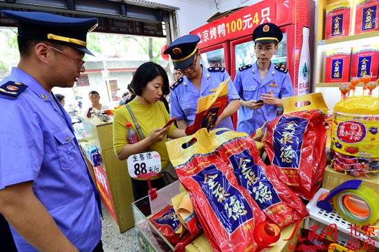 据北京东城市场监管局朱学理介绍,由于紧邻故宫,南北池子地区每天都有大量的游客过往。在经济利益的驱使之下,一些心存侥幸的不法商户涉嫌违法销售侵权商品,严重扰乱了市场经营秩序,侵害了消费者合法权益。