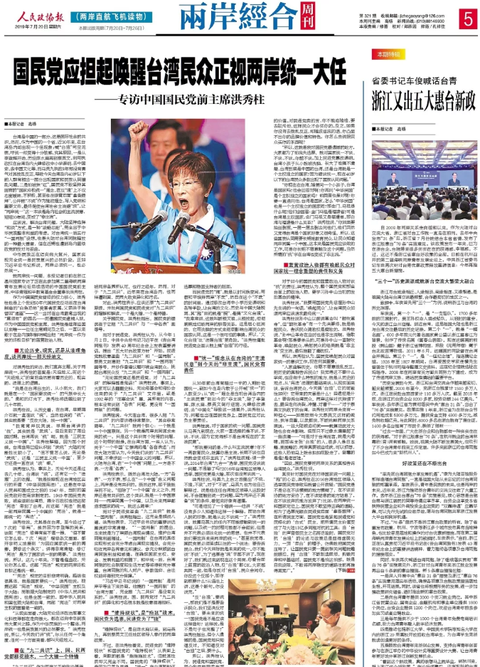就两岸统一问题,本报记者日前独家专访了中国国民党前主席洪秀柱。