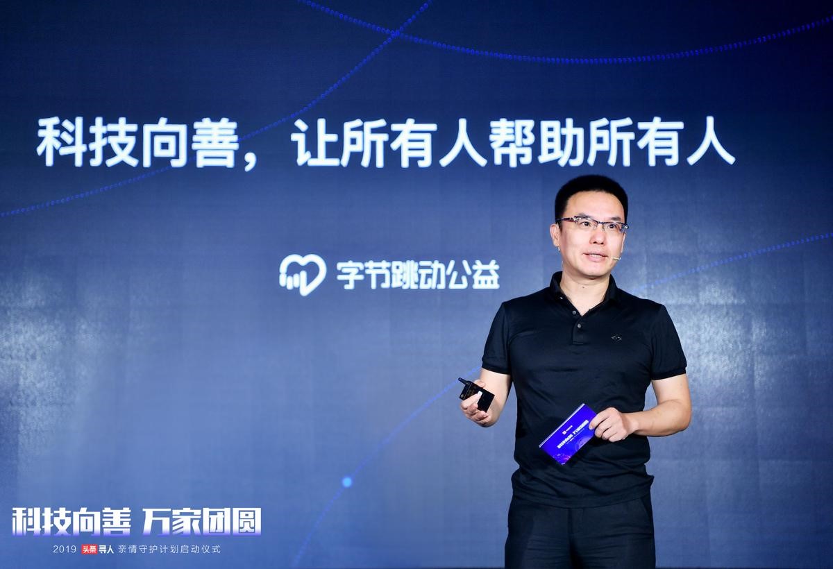 随后,字节跳动副总裁张羽以《字节跳动公益的三个关键词》为题做了分享。他透露,截至2019年7月,头条寻人已经帮助超过一万个家庭团圆。找回的一万名走失者中,包括3897位老年人,974位未成年人和5129位成年人。