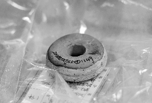 出土的木屐,头部刻有如意花纹。(圈图为算珠)
