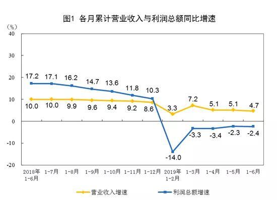 2019年1—6月份全国规模以上工业企业利润下降2.4%