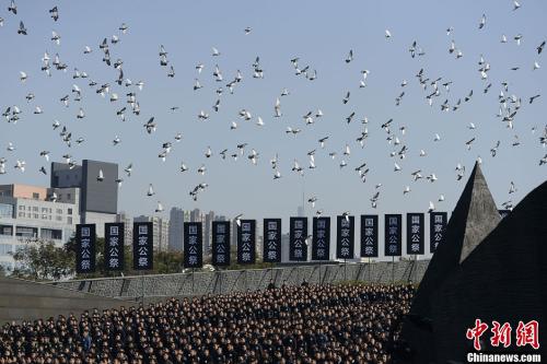 资料图:2014年12月13日是首个南京大屠杀死难者国家公祭日。当天上午10时,国家公祭仪式在侵华日军南京大屠杀遇难同胞纪念馆举行。中新社记者 廖攀 摄