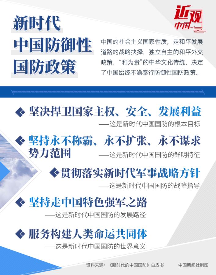 在新中国成立70周年之际,三个“永不”被作为中国国防的新时代特征写入国防白皮书,成为中国国防政策的根本依循,无疑再次向外界传递了中国走和平发展道路的决心和信心。