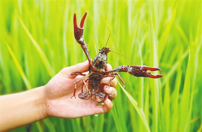澄迈稻虾共养的小龙虾。