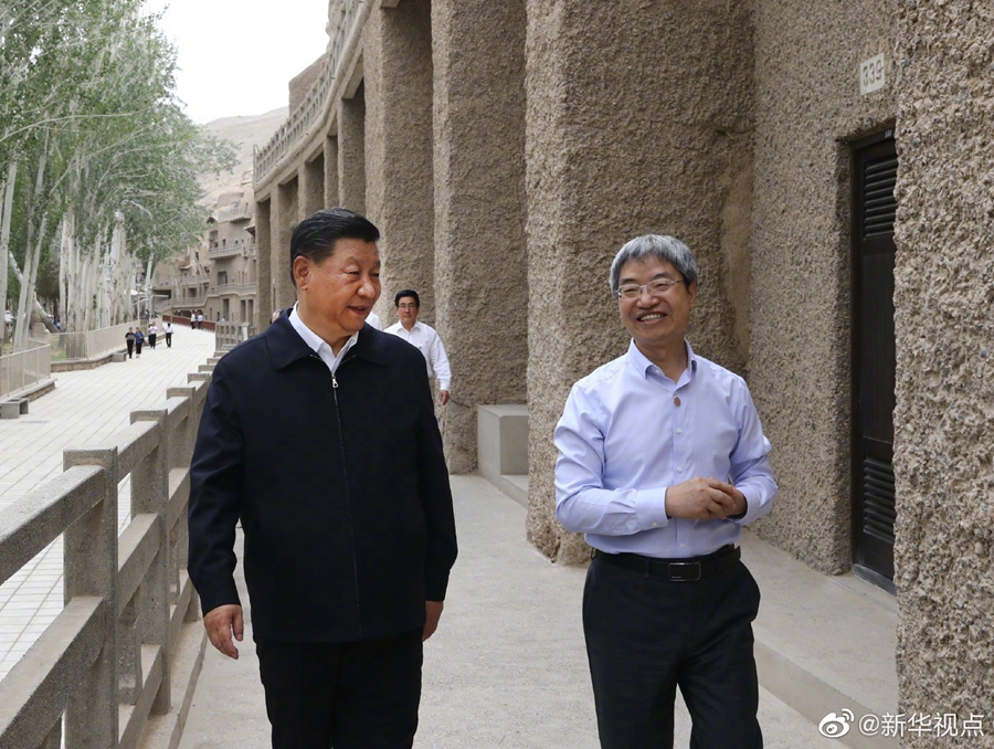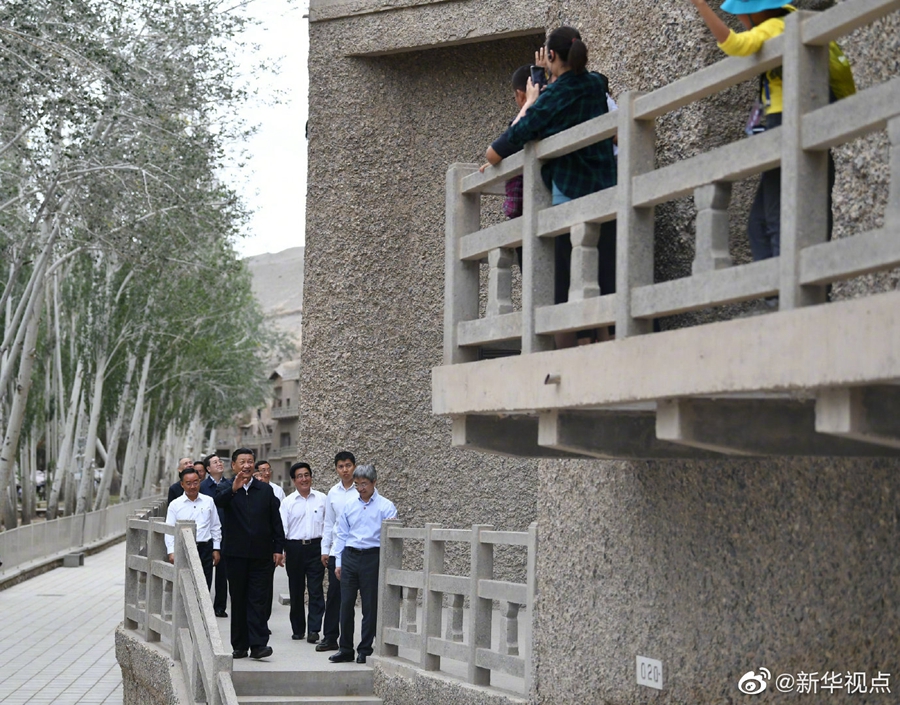 习近平总书记19日在甘肃省考察调研。当天下午,他来到全国重点文物保护单位敦煌莫高窟,实地考察文物保护和研究、弘扬优秀历史文化等情况。(文字:张晓松、朱基钗 摄影:鞠鹏、谢环驰)