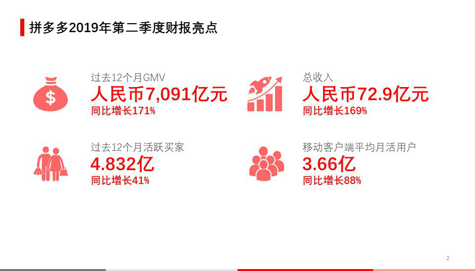 人民政协网北京8月21日电 北京时间8月21日,新电商平台拼多多(NASDAQ:PDD)发布了2019年第二季度财报。