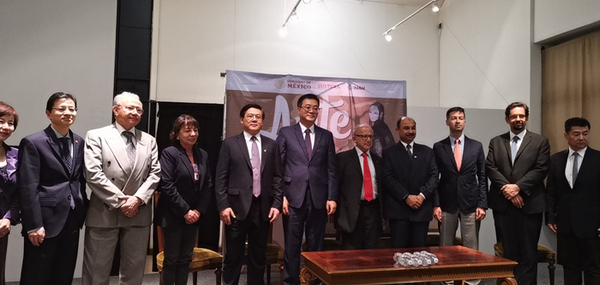 开幕式上,墨西哥国立世界多元文化博物馆馆长阿尔蒂斯女士首先致辞:现代社会科技的飞速发展使得毁坏力量也在巨大增长,进而威胁到现代文明,对社会发展资源造成不可估量的损害。所以,我们更要将和平作为共同和坚定的追求。本次展出的作品呈现的新技法和新表现既有中国传统特色,又有西方概念特点,冲破了东西方之间的壁垒,毫无疑问为艺术开辟了新的前景。每件作品都深刻体现了这次展览的主题——艺术与和平,展示了人类对和平与发展的渴望。愿展览能够在两国人民之间建立更深厚的感情,加固友谊的纽带。
