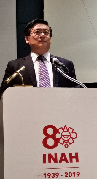 墨西哥文物局长普列多先生最后发言:2019年不仅是中华人民共和国成立70周年,也是欧洲殖民者踏上墨西哥国土500周年。在过去的漫长岁月中,墨中两国人民以各自的方式浴血奋战、砥砺前行,在争取主权、寻求和平、渴望发展的道路上有共性,也有共鸣。诚如本次展览的主题所言,艺术是和平的代言人,也是其传播媒介,展览让大家近距离地接触这份由艺术家创造的、极具感性和独创性的辉煌财富。中国朋友向我们提供了一个如何进行古今文化对话,展示文化多样性和进行国际互动交流的绝好案例。此次展览也将成为中墨文化交流和关系巩固的新开端。