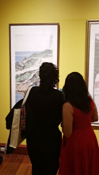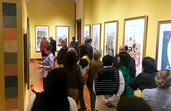 开幕式后,中外嘉宾一同参观了展览,中国美协代表团团长徐里结合作品,为大家生动讲解了中国传统绘画的创作技法与西方艺术的异同点,指出中国美术从材料、意境、艺术表现力到文化共性,完美地诠释了独具中国特色的民族文化气质与写意精神。嘉宾称如此多的精美作品聚集一堂,为墨西哥观众带来美好的享受。中国水墨风《玛雅金字塔》、油画《中国卫士》、雕塑《麦当劳-CHINA》、《新观察》等数件作品引起了现场观众的浓厚兴趣,纷纷驻足留影。