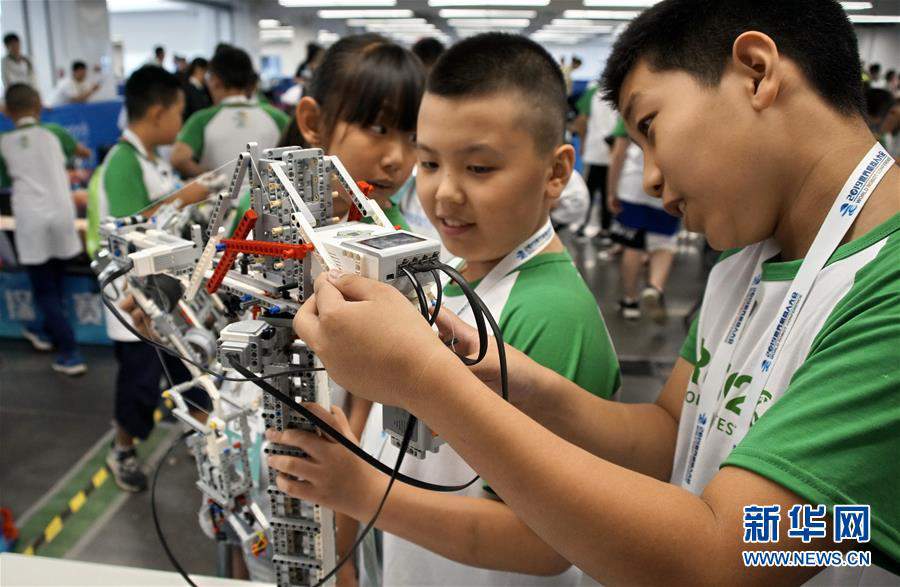 8月21日,参赛选手在比赛中。 世界机器人大赛冠军赛与北京2019世界机器人大会同期举行。世界机器人大赛被誉为机器人界的“奥运会”,今年共设BCI脑控机器人大赛、共融机器人挑战赛、机器人工业设计大赛、青少年机器人设计大赛四大类赛事。大赛已在全球举办了多场选拔赛,本次冠军赛有中国和来自俄罗斯、日本、韩国、美国、新加坡、墨西哥、菲律宾等10余个国家和地区的1000余支队伍参赛。 新华社记者李欣摄