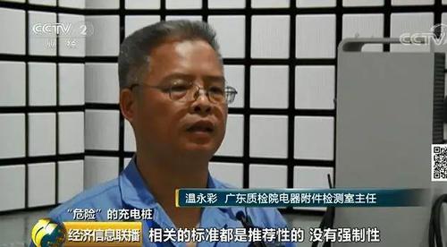 广东质检院电器附件检测室主任 温永彩:充电桩产品不在CCC强制认证目录内,相关的标准都是推荐性的,没有强制性。但这些问题是用户在使用的时候,跟安全确实是息息相关的。 记者了解到,充电桩这类产品一般是按订单生产,主要是国家电网、充电服务运营商和车企采购,流通领域销售较少,而充电桩的电压普遍高于我国家庭用电电压。