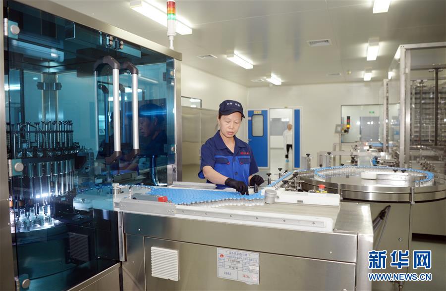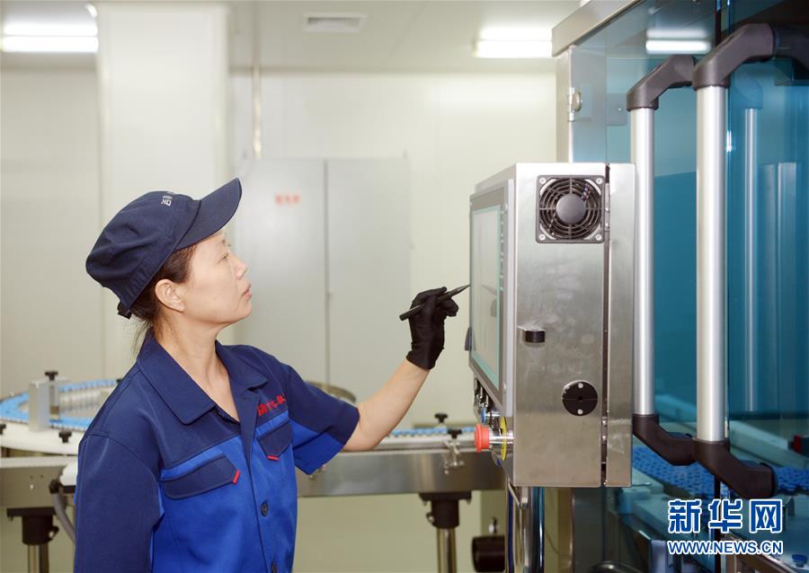吉林敖东药业集团延吉股份有限公司灯检线操作工朱秀芳在操作全自动冻干粉针侦检机(8月22日摄)。新华社发