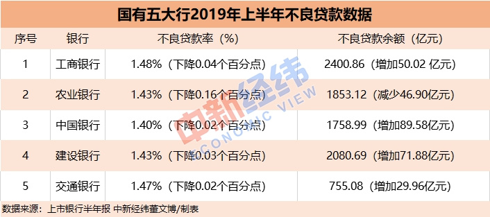 此外,农业银行也是上半年惟一一家实现不良贷款余额和不良贷款率“双降”的国有银行,其余四家国有银行上半年不良贷款余额均呈上升趋势。