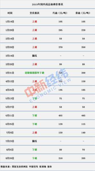 中新经纬客户端统计,2019年以来,按照“十个工作日”一调整原则,包括3月31日因增值税税率调整而进行的下调,国内成品油价已历经17轮调价,呈现“9升6降2搁浅”格局,汽、柴油价格分别累计上调125元/吨和140元/吨。