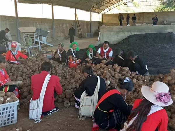 通过“核桃+魔芋+木瓜”的复种模式,卫明祥的基地实现了亩产值达4782元。预计到2020年,亩产值将达1.1万元,可实现经济收入90余万元。在该基地的带动下,怕拍村先后成立了魔芋种植专业合作社和魔芋种植协会,探索形成了“部门+公司+基地+协会+农户”的发展模式。此外,卫明祥还于2016年11月投资建成了糯良乡怕拍魔芋加工厂,实现魔芋产业化发展。