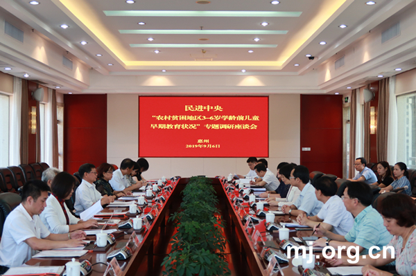 6日至8日,“民进中央农村贫困地区3-6岁学龄前儿童早期教育状况座谈会”先后在惠州市、河源市、清远市召开,民进中央妇女儿童委员会副主任刘志茹代表调研组介绍调研背景?;嵘希薪逃?、民政、财政、编办、人社、发改、妇联、自然资源等政府相关职能部门负责人及幼儿园、教师代表围绕调研课题分别介绍情况,与会同志结合乡村振兴和脱贫攻坚工作,就本地区3-6岁学龄前儿童早期教育现状、经费保障、师资情况、入园率、教育观念和存在困难等问题与调研组成员进行交流。