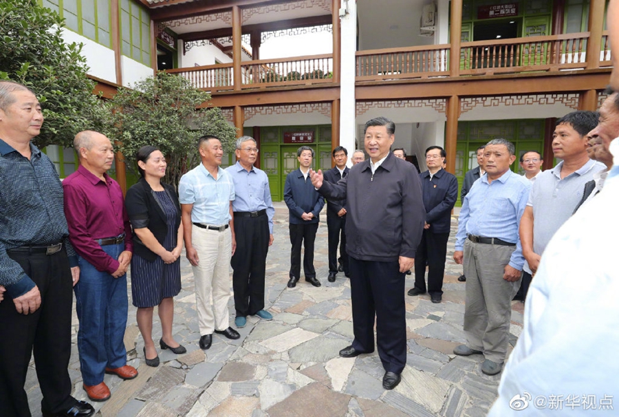 习近平总书记16日在河南省考察调研。当天下午,他首先来到位于新县的鄂豫皖苏区首府烈士陵园,向革命烈士纪念碑敬献花篮,瞻仰革命烈士纪念堂。随后,他参观了鄂豫皖苏区首府革命博物馆,并看望了当地红军后代、烈士家属代表。(文字记者:张晓松、朱基钗 摄影记者:鞠鹏、谢环驰)