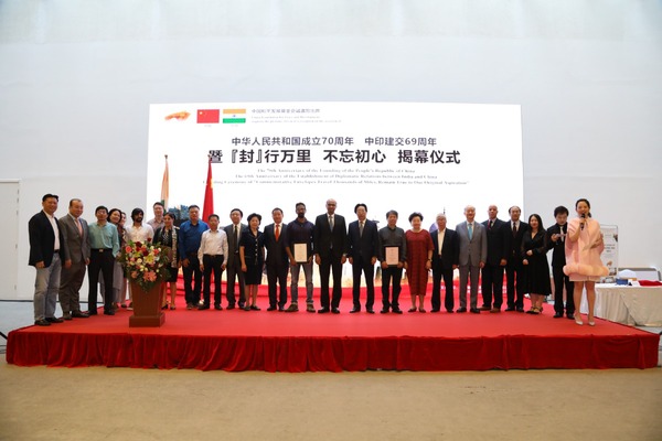 为纪念中华人民共和国成立70周年和中印建交69周年,由中国和平发展基金会发起,中宇力度文化有限公司主办的“‘封’行万里,不忘初心”中国-印度纪念封的揭幕仪式16日在京举行。由中印两国艺术家创作的中国-印度纪念封正式揭晓。