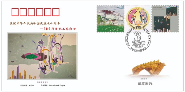 中国-印度纪念封的邮票附图由中国艺术家毛岱宗和印度艺术家古巴塔创作。毛岱宗现为山东艺术学院教授,其作品曾参加全国美展及国内外油画学术展并获奖,被中国美术馆、以及国外美术机构、团体及个人收藏。几十年来,毛岱宗在油画艺术上潜心耕耘,不断探索和追求艺术的时代内涵与形式语言的文化品质,在形成自我鲜明艺术风格的同时,他的许多思考和他的油画表达方式,为中国当代油画的学术发展做出了有价值的贡献。