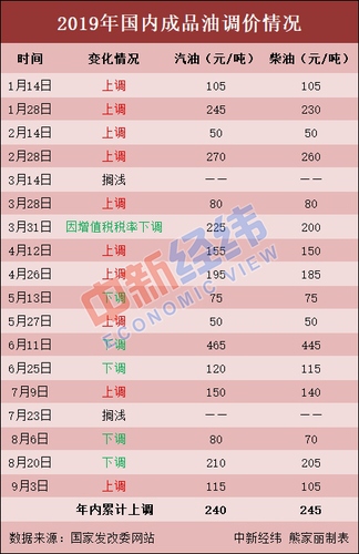中新经纬客户端梳理发现,今年以来,包括3月31日因增值税税率调整而进行的下调,国内成品油价已历经18轮调价,呈“10升6降2搁浅”格局。截至目前,国内汽、柴油价格已分别累计上调240元/吨和245元/吨。若本轮上调兑现,国内成品油价9月将实现“两连涨”,这也将是年内第11次上调。