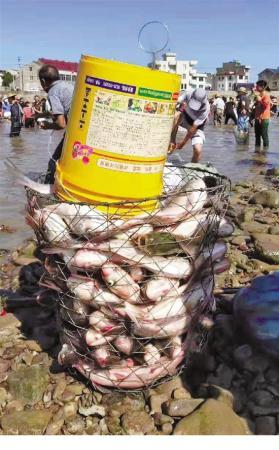 “我们去的时候,水涨溪的浅滩里都是人。有些人拿着网兜,还有人撒网。网一收,就有几十条鱼的收获?!?刘女士说,当时溪水很浅,站在水里,鱼群就在脚边穿梭,还会时不时跳出水面蹦跶,鱼简直多到“触手可及”。