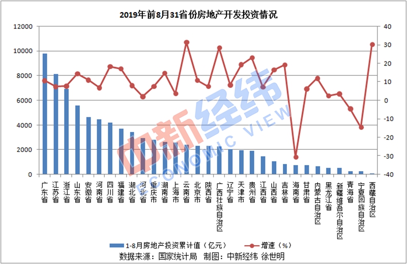 31省份前8月房地产投资排行:广东近万亿 三地负增长