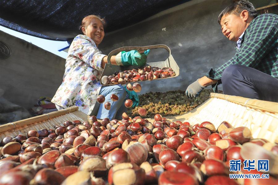 9月23日,河北唐山遵化市侯家寨乡北下营村村民在整理收获的板栗。