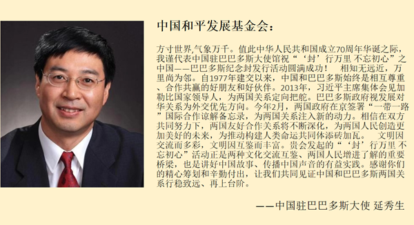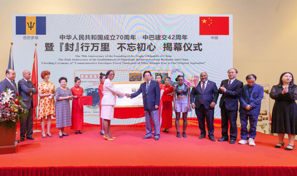 “‘封’行万里 不忘初心”中国-巴巴多斯纪念封揭幕