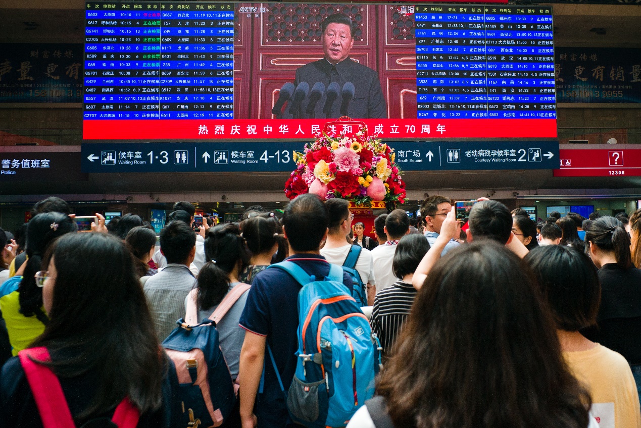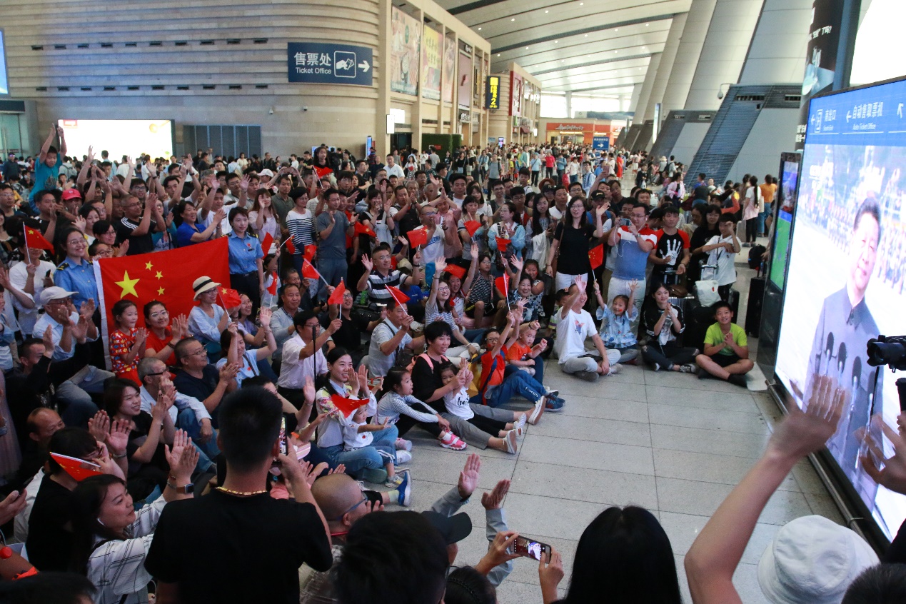 北京西站转播国庆盛典
