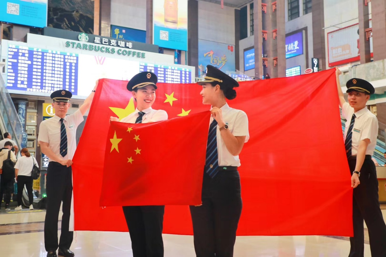 北京站国庆节期间组织的我与国旗同框快闪活动