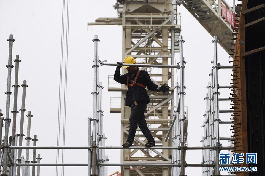 10月10日,中铁十二局的工人在雄安站施工。雄城际铁路雄安站总建筑面积约47万平方米,地上3层,地下2层。目前,地下主体结构基本完工,地上主体结构施工已经开始。新华社记者 邢广利 摄