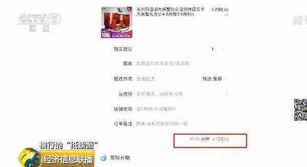 券好买蟹难吃 网购蟹券“猫腻 今年中秋节,南京的李先生收到了公司发放的福利——大闸蟹提货券。可当李先生按照提货要求,等到了商家寄来的大闸蟹,满心欢喜的他却傻了眼?!按笳⑿纷芄彩前酥?,买回去有三只是死的。我把图片还有卡的信息提供给客服,他说的意思反正就是不管了?!苯帐∧暇┦邢颜呃钕壬?。
