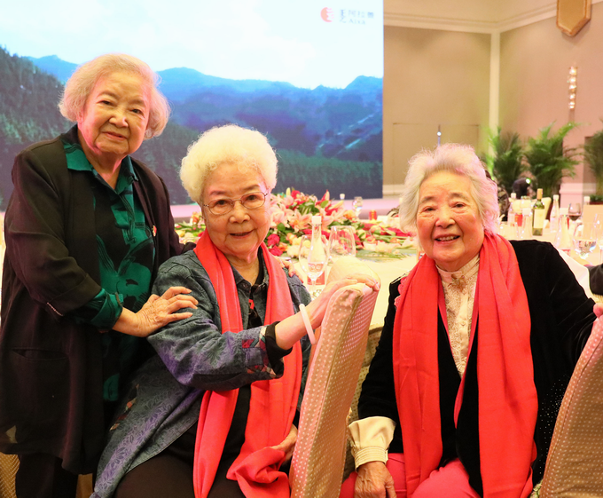 百岁高龄老红军苏菲(右)与孟于(左)、田华(中)合影