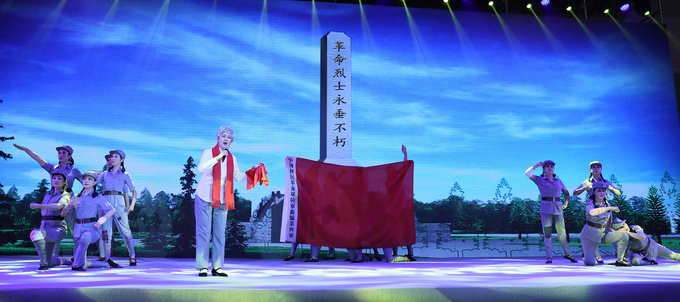开场歌舞由来自北京盛基艺术学校、2008年汶川大地震幸存的藏族孤儿演出,《再唱山歌给党听》表达他们发自内心地感恩党,感恩所有关爱他们的人,感恩为革命的胜利,为新中国成立,前赴后继,抛头颅、洒热血的老革命老英雄。