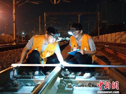 铁路工人连夜排查线路安全隐患?!√饭┩肌∩?/p>