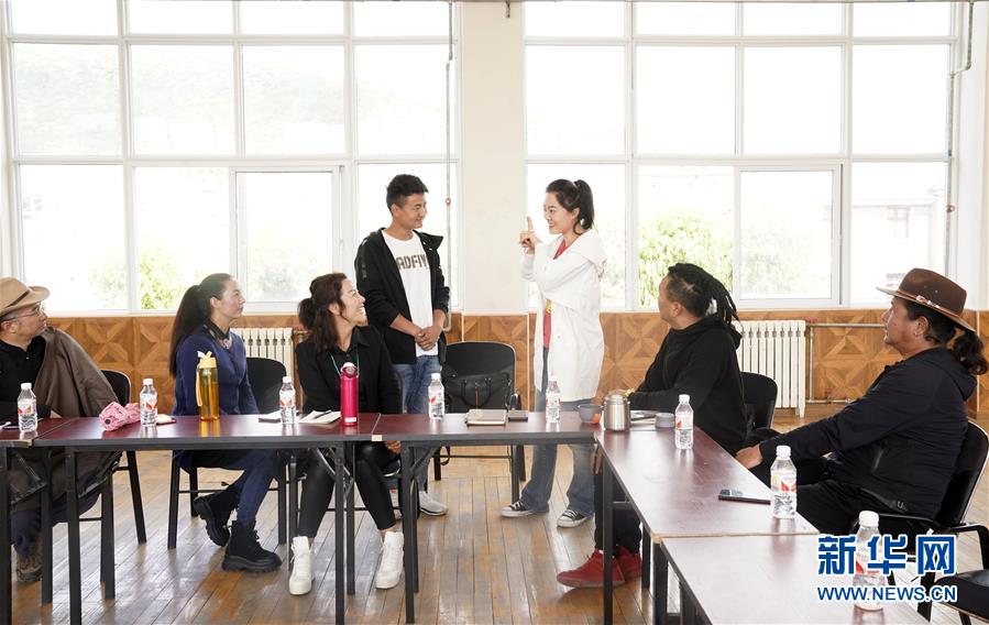 7月27日,中央歌剧院在云南省迪庆藏区自治州香格里拉市开展“我们的中国梦——文化进万家”活动。这是中央歌剧院女中音歌唱家孙雪曼(右三)与迪庆藏族自治州民族歌舞团演员交流。 新华社记者 金良快 摄