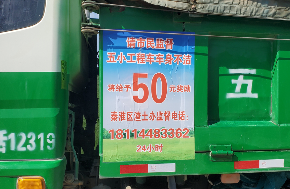 南京秦淮:市民举报“五小工程”渣土车违规可获50元奖励