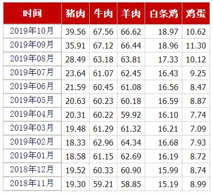 猪肉、牛肉、羊肉、白条鸡、鸡蛋均价(元 公斤) 来源:农业农村部官网截图