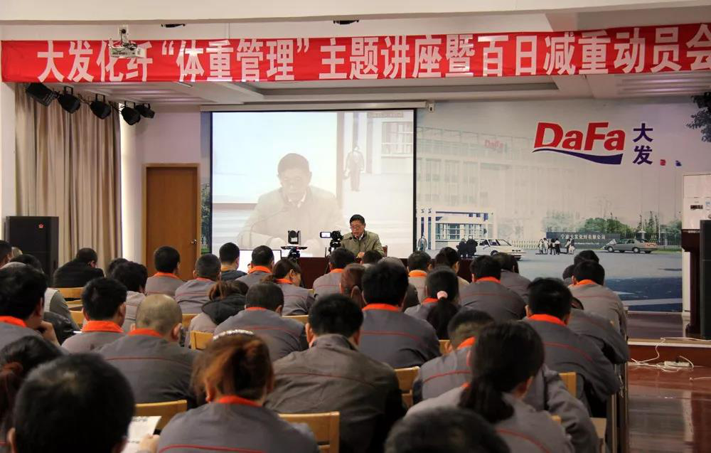 此次员工减重计划的顺利开展,也与厂里一直在倡导鼓励的健康生活有着密不可分的联系。在大发化纤,专门设立了职工健身中心和1000平方米的室外健身区,并配备各种运动器材20多类、60多件,方便员工开展体育锻炼;同时公司4个食堂严格控制油、盐的用量,并购买优质的油和盐,不做油炸、腌制食品;另外每月为员工开展如何健康饮食的培训,为他们提供健康咨询、指导等个性化的服务。