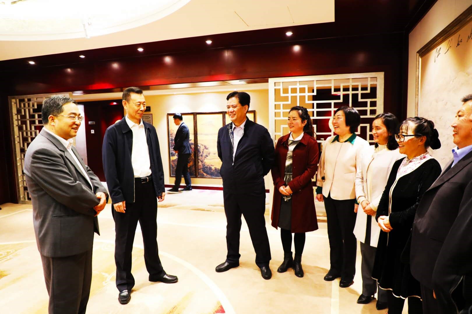 全国政协副主席、民盟中央常务副主席陈晓光(左二)在出席第26届杨凌农高会期间,亲切接见了杨凌盟工委班子成员和基层盟员代表。民盟中央农业委员会副主任、民盟陕西省委副主委、杨凌工委主委昝林森(左一)简要汇报了杨凌盟工委组织建设、参政议政、社会服务及主题教育活动开展情况。陈主席勉励大家继承和发扬优良传统,牢记使命担当,再接再厉,勇创佳绩。全国政协常委、全国政协副秘书长、民盟中央副主席张道宏(左三)陪同接见。 杨林/摄影