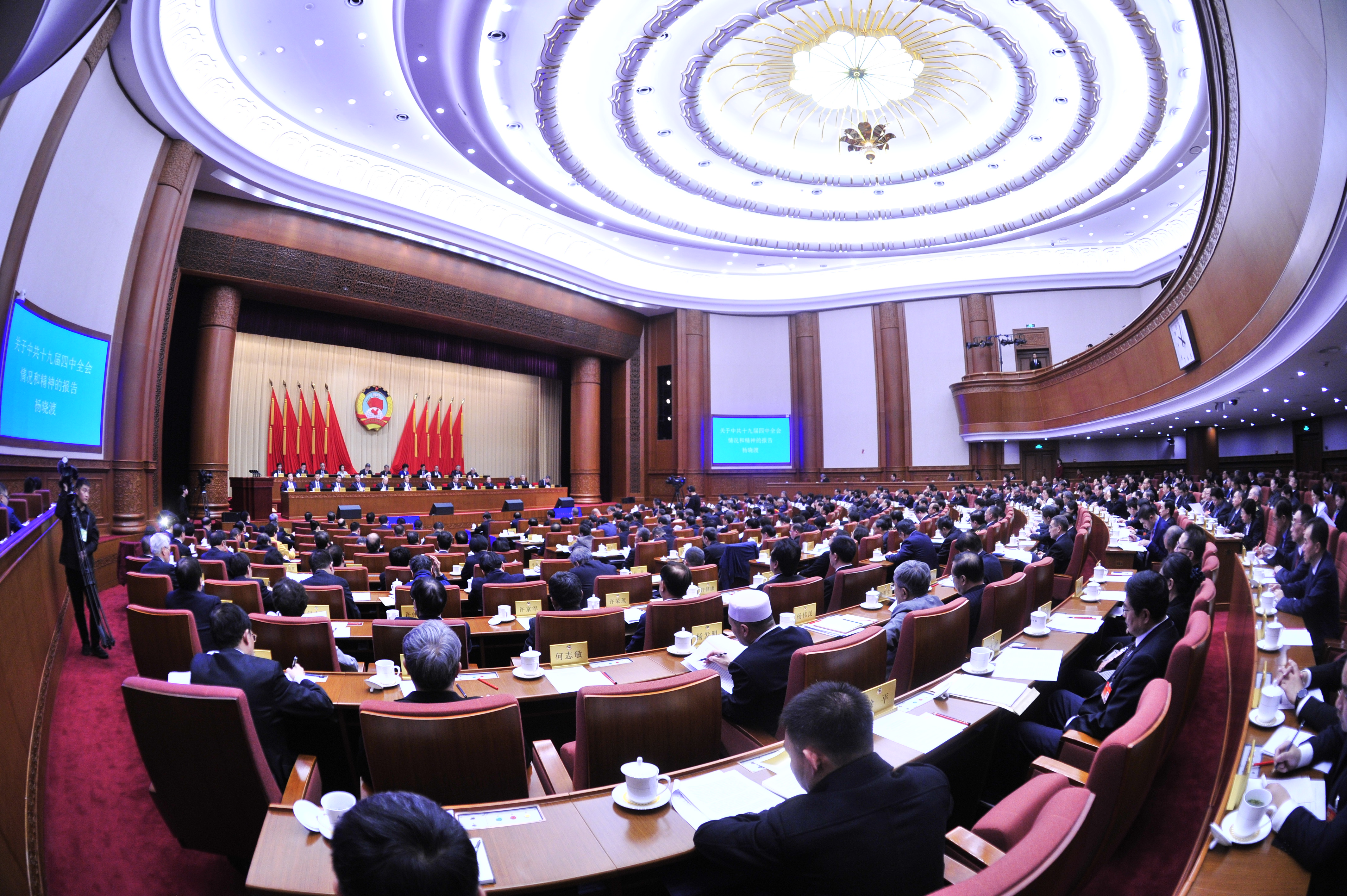 杨晓渡表示,深入学习贯彻四中全会精神是当前和今后一个时期的重要政治任务,要把学习贯彻四中全会精神同学习贯彻习近平新时代中国特色社会主义思想结合起来,在坚定制度自信、毫不动摇坚持上下功夫,在坚持问题导向、与时俱进完善上下功夫,在强化制度意识、严格遵守执行上下功夫,做到全面准确领悟、扎实有效贯彻,继续坚持好、巩固好、完善好、发展好我国国家制度和治理体系,不断把我国制度优势更好地转化为国家治理效能。