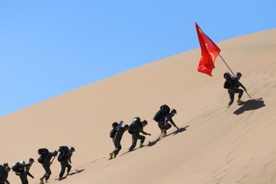 今年,为庆祝中华人民共和国成立70周年,重温老一辈革命军人艰苦卓越的长征历程,他们进行了一场特殊的拉练:在库布其沙漠和恩格贝沙漠“行军”67公里,89人(含16名女生)日行军30公里无一人掉队。
