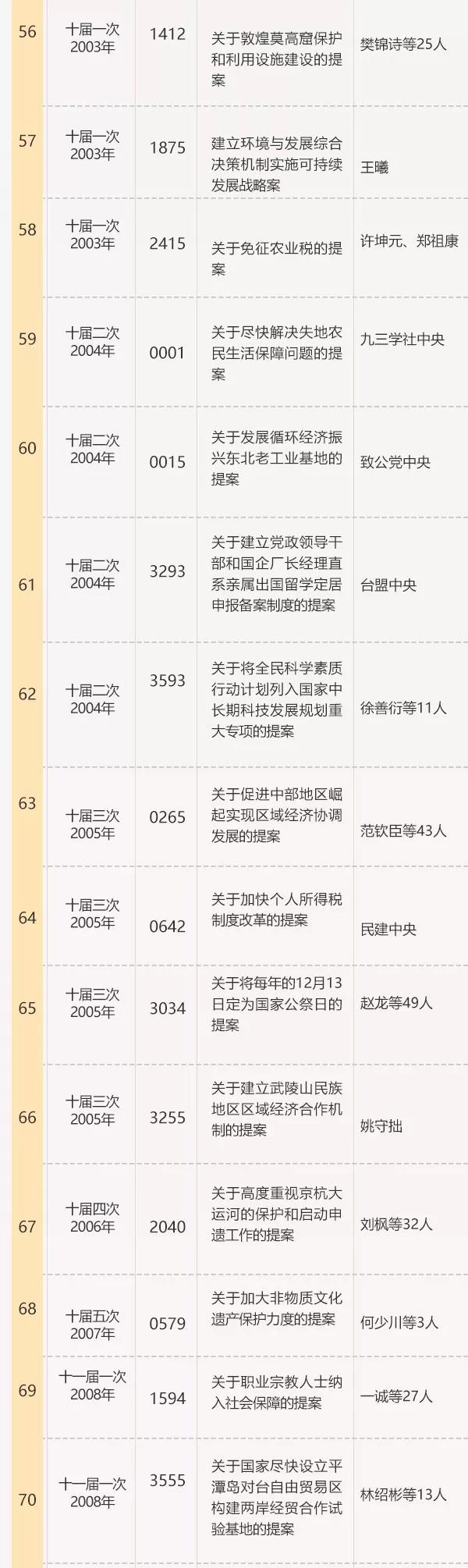 附件:全国政协成立70年来有影响力重要提案名单